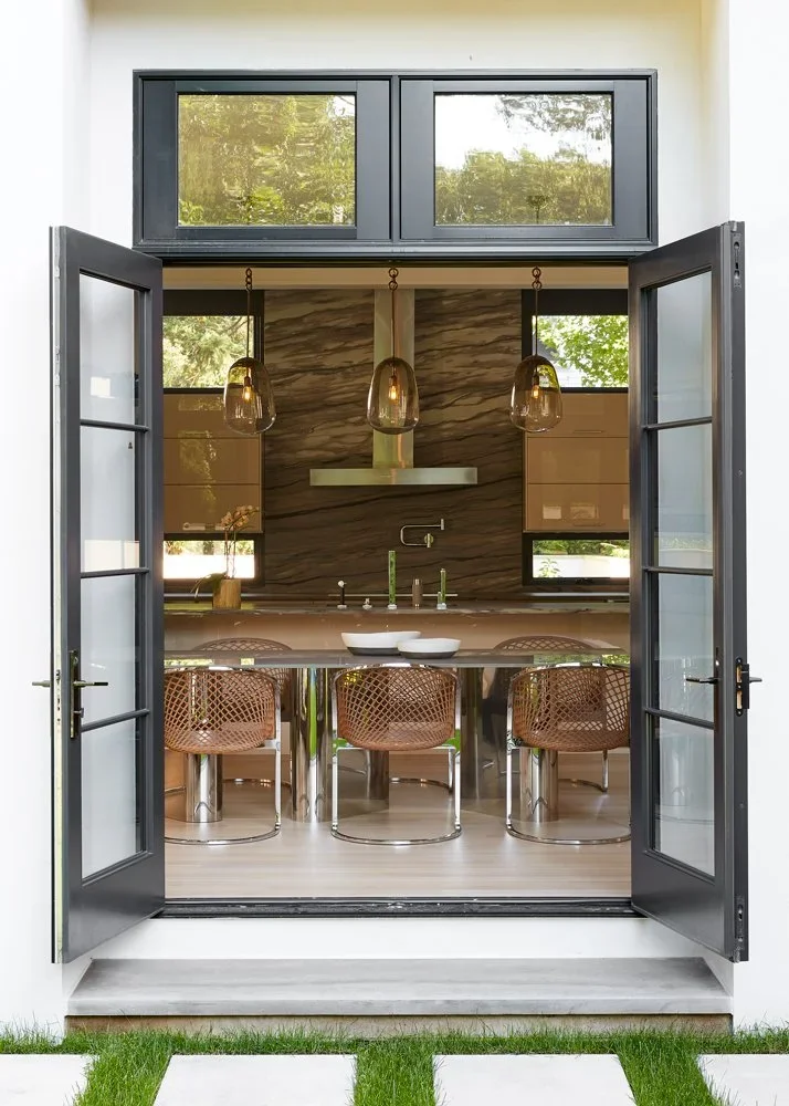 A modern oasis in Tenafly, NJ, where Aman Resorts’ serene luxury meets James Bond’s sleek metallics, grounded by warm earth tones and rich textures.